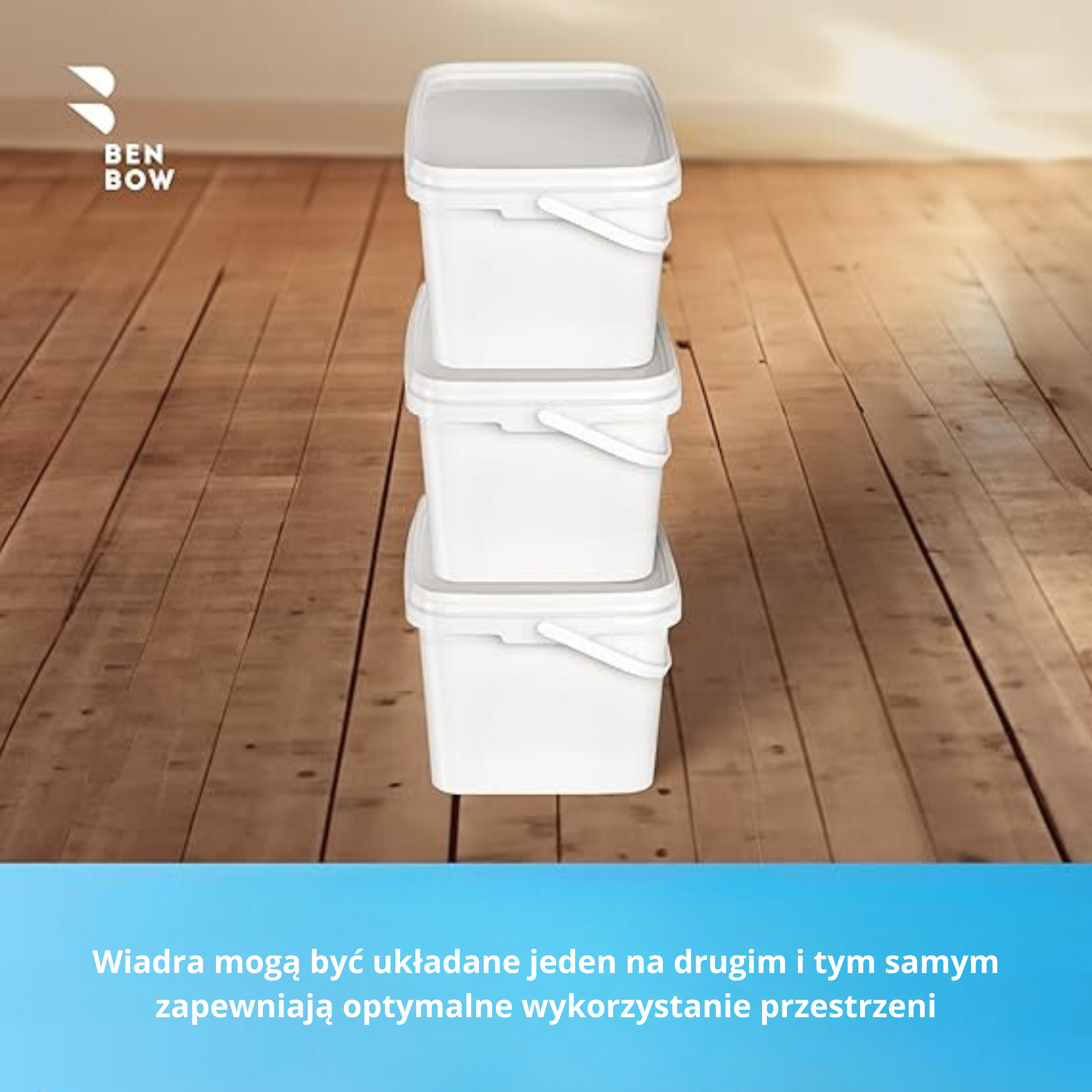 Zakres dostawy - 5-litrowe prostokątne wiadro BenBow z pokrywką i uchwytem.