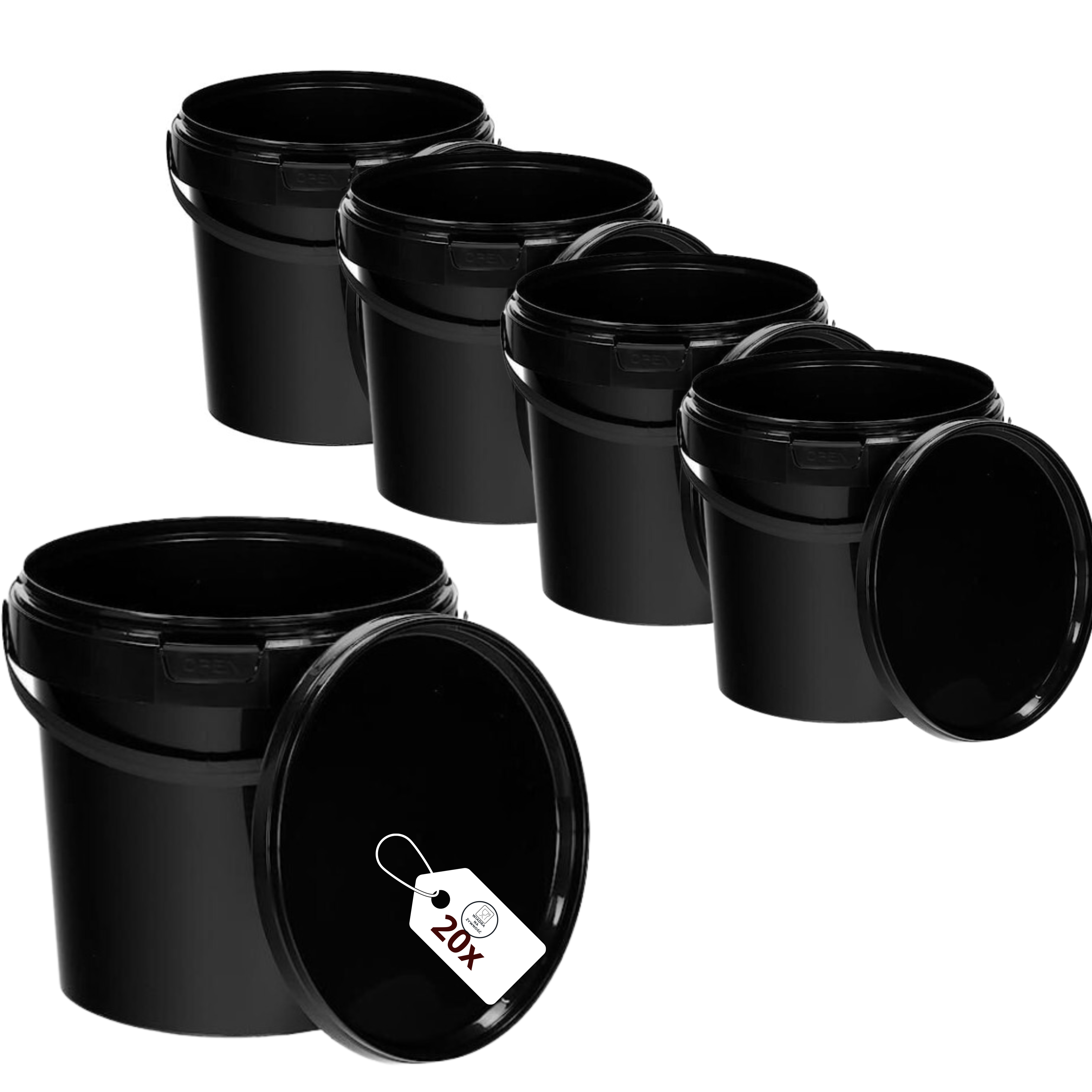 20x Wiaderko 1L z pokrywką CZARNE na żywność