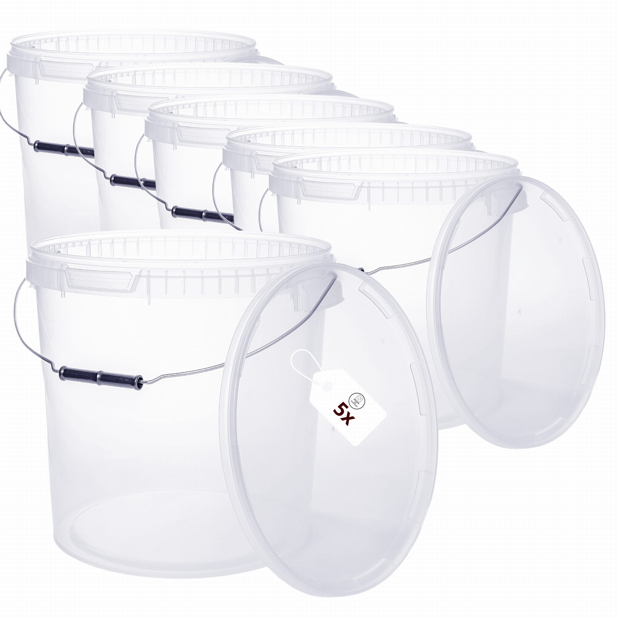 5x Wiadro plastikowe 30L (33L) z pokrywką Transparentne | Na żywność | Atest